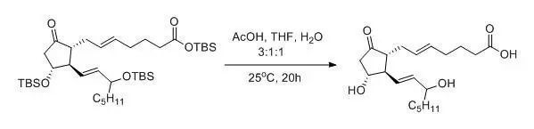 一、AcOH, THF, H2O,(3:1:1),25℃,20h。【J. Am. Chem. Soc., 94, 6190 (1972)】