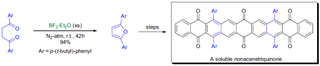 1884年,C.Paal和L.Knorr幾乎同時報道了1 ,4-二酮通過強無機酸的脫水生成取代呋喃。該反應被廣泛應用,稱為Paal-Knorr呋喃合成。