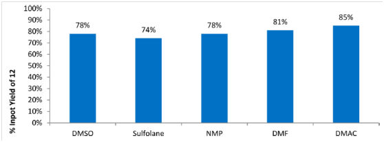 這還沒有結束,有群眾反映這個反應臭臭的,我們不喜歡。都是DMSO在作怪,換了他!這次DMAc舉手默默站了起來。不但解決了臭的問題,收率又順帶著往上提了提。DMSO罵罵咧咧的離開了。