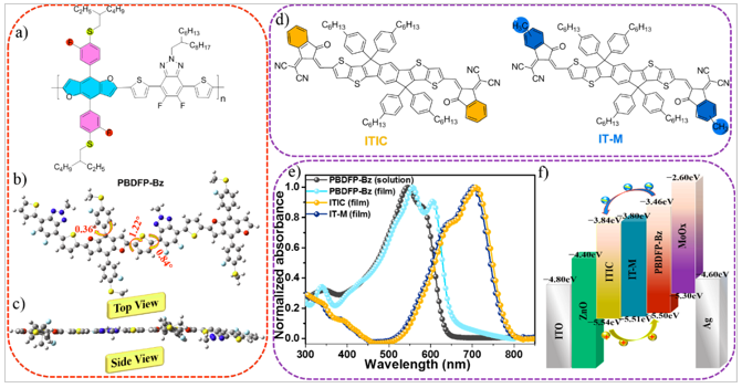 圖1. 新型苯并呋喃基共軛聚合物PBDFP-Bz分子結構及其物理化學性質