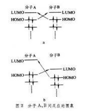 對(duì)于兩個(gè)分子A和B間的反應(yīng),前線軌道理論給出的圖像見(jiàn)下圖。即分子 A和 B的HOMO中的電子分別流向?qū)Ψ降奈凑糒UMO,從而引起化學(xué)鍵的生成和斷裂,發(fā)生化學(xué)反應(yīng)。只有分子A(或B)的HOMO與分子B(或A)的LUMO的能量比較接近,對(duì)稱性也互相匹配時(shí),才容易發(fā)生電子流動(dòng),圖2a為分子A和B相同時(shí)的情形,圖2b為A和B不相同時(shí)以A的HOMO中的電子流向B的LUMO為主的情形 。著名的分子軌道對(duì)稱守恒原理也可借助于前線軌道理論加以闡明。必須指出,前線軌道理論不僅適用于π軌道,也適用于σ軌道,因此它在有機(jī)化學(xué)、無(wú)機(jī)化學(xué),以及表面吸附與催化、量子生物學(xué)等領(lǐng)域都有應(yīng)用。