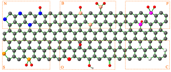 文章進而詳盡地綜述了4大類12小點方法來調控碳基催化劑的性能,包含異質原子摻雜(單原子摻雜,多原子摻雜,氮摻雜的活性位點研究,摻雜元素的空間分布,超級摻雜), 表面功能化,內部缺陷以及邊緣調節,多孔結構(外模板法,自模板法),納米形狀調控 (打破MOFs制備碳的形狀限制)。▲圖5. 調控碳基催化劑性能的一些常用方法示意圖。