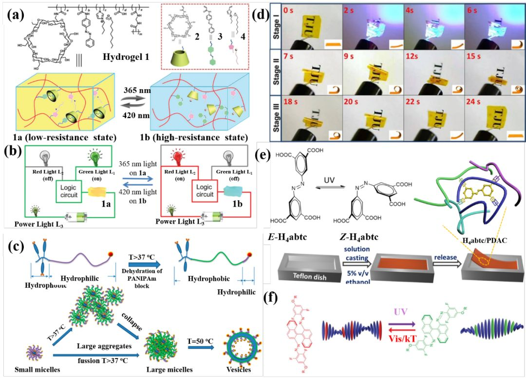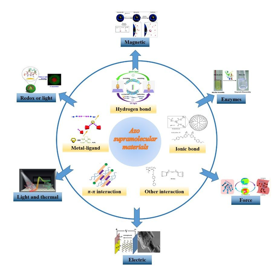 超分子聚合物是高分子科學與自組裝技術交叉融合所產生出的新研究方向,兼具傳統聚合物和易加工、環境響應和自修復等特性。偶氮基超分子聚合物因對光照、溫度、pH值等外界刺激具有快速、智能的響應,而成為分子馬達、形狀記憶、液晶材料、太陽能熱存儲、編碼與讀取、智能加密等領域潛在的應用材料之一。