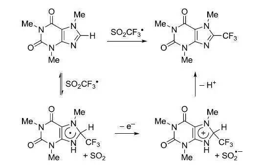 利用Langlois試劑(三氟甲烷亞磺酸鈉)進官能團化。