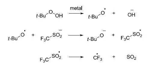 一種機理如下,形成CF3自由基參與反應。5