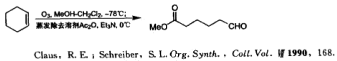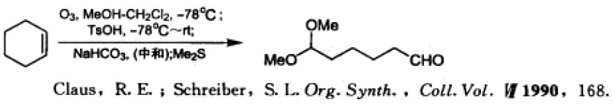 反應(yīng)說明:該反應(yīng)是環(huán)烯烴被臭氧氧化開環(huán)形成醛酮的反應(yīng)。
