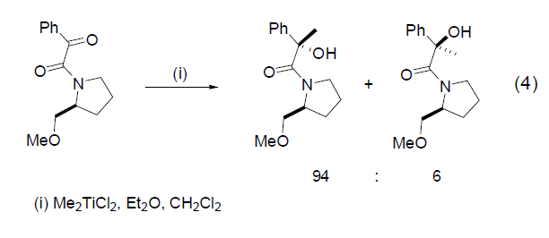 1. (a) Mikami, K.; Matsumoto, Y.; Shiono, T. Science of Synthesis, 2003, 2, 457. (b) Reetz, M. T. Organotitanium Reagents in Organic Synthesis; Springer: Berlin,1986. (c) Reetz,M. T. In Organometallics in Synthesis; Schlosser, M., Ed.;Wiley: New York, 1994.