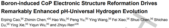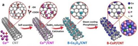 https://onlinelibrary.wiley.com/doi/10.1002/anie.201914245盡管過渡金屬磷化物(TMP)已經成為替代Pt的最有前途的析氫反應(HER)催化劑,但其性能的進一步提高需要在局部原子水平上對TMP位點進行精細調控,和對其電子結構的催化機理有深刻的認識。近日,黑龍江大學陳志敏團隊首次報道合成負載在碳納米管上,由硼調控的CoP (B‐CoP/CNT),其在廣泛的pH范圍內都具有析氫活性。在高電流密度(>100mA cm-2)的中性和堿性介質中,其性能甚至優于商業Pt/C。實驗和計算表明,電負性的硼原子可調控催化位點的電子結構,增強Co原子的電子離域能力以獲得高電導性,同時優化活性位點上的H吸附和H2解吸,從而降低HER能壘。本文為研究基于非金屬調控電子結構的高效電催化劑提供了一種可行的策略。
