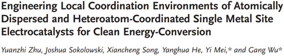 太陽能的儲存和轉換需要開發具有較高、快速的光生電荷分離效率和高表面催化活性的催化劑,但仍面臨挑戰。近日,北京大學郭少軍團隊設計合成了一種原子分散在CdS納米棒上的Co-P3(CoPSA-CdS)結構,實現了甲酸脫氫的高光催化活性。實驗證明,Co-P3具有獨特的電子富集特性,通過界面電荷效應大大提高了光生電荷分離的效率;并且與傳統的硫配位Co單原子負載在CdS上相比,Co-P3能實現更好的甲酸解離和吸附,以及C-H鍵的活化,使得催化活性比后者高出約50倍,質量活性達102.9mmol gcatal-1h-1。這一發現為研究金屬單原子催化劑的配位結構和光催化性能之間的關系提供了思路。https://onlinelibrary.wiley.com/doi/10.1002/adma.201904249單原子催化劑因其極大的原子利用率和較高的質量活性在能源催化領域備受關注。單個金屬位點與其周圍配位環境之間獨特的相互作用在調節金屬中心的電子結構方面起著重要作用,可引起一些新的反應機制和改善的催化性能。近日,紐約州立大學布法羅分校武剛教授等發表綜述,總結了單原子催化劑局部配位環境方面的研究進展,用于改善幾種關鍵的能源轉換反應的性能,包括氧還原、析氫、析氧、CO2還原以及氮還原反應等;綜合討論了多種工程策略,包括雜原子摻雜、改變SACs在載體上的位置、引入外部配體以及構建雙金屬位點等;并重點介紹了可控合成策略和活性增強機制。這篇綜述為合理設計先進的電催化劑提供了結構-活性關系方面的認識。