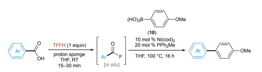 在眾多的鎳催化劑中,Ni(COD)2是一種弱配位的鎳催化劑,大部分反應需要加入配位能力強的配體才能起作用,這也擴大了其的應用范圍,通過和各種配體配位可以用于催化各種反應。如Suzuki-Miyaura偶聯反應,Buchwald-Hartwig反應,Heck反應,Kumada偶聯反應,Negishi偶聯反應,還原偶聯反應,C-X活化偶聯反應(X=H, O, S, N等),脫羧(脫羰)偶聯反應,環加成反應,氧化反應等等。下面對Ni(COD)2的一些最新應用,做一簡單介紹。