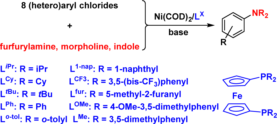 2017年Clark等人報道了利用Ni(COD)2/膦配體催化下,芳基氯和各種伯胺或仲胺進行Buchwald-Hartwig偶聯取得很好的效果。