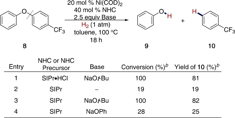 2017年,John F. Hartwig報道了Ni(COD)2和NHC配體催化C-O活化二芳基醚氫解反應。
