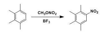 Asolutuion of 1, 2, 3, 4-tetramethylbenzene (1.34 g, 10 mmol) in nitromethane (20 mL) was addedmethyl nitrate (2.31 g,30 mmol). The mixture was stirred at 25oCand saturated with boron trifluoride gas. The mixture was stirred for 1 h then washedwith Sat.NaHCO3 solution, extracted with CH2Cl2. The combined organic layers were evaporatedunder reduced pressure, the residue was purified by column chromatography togive the product (1.62 g,90%).