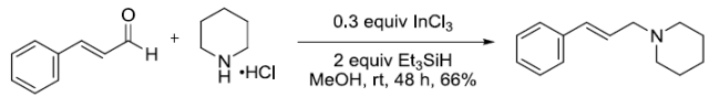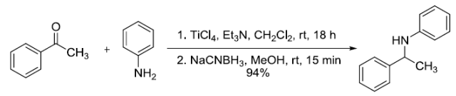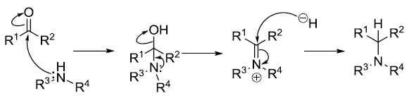 由胺和羰基化合物而來的亞胺還原(常用NaCNBH3)給出相應胺的還原氨化反應。
