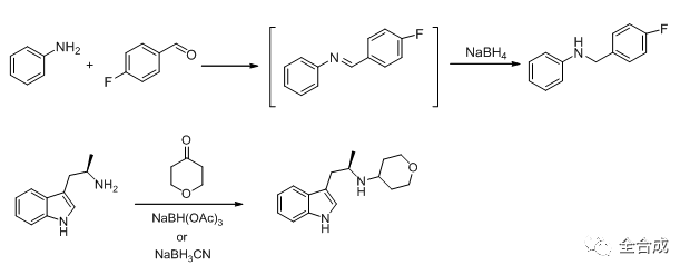 由醛或酮與胺反應形成亞胺,再通過硼氫化鈉或三乙酰氧基硼氫化鈉還原,得到烷基取代的胺類結構。