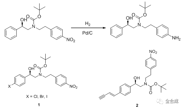 最干凈和簡便的方法是采用Pd/C或Raney Ni加氫還原硝基。當分子內存在對加氫敏感的官能團時,如鹵素,雙鍵,三鍵等,催化加氫不適用。