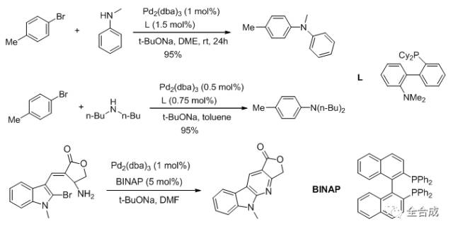 Buchwald-Hartwig反應:1995年Buchwald和Hartwig 報道了鈀催化芳鹵代物的胺基化反 應。經過近幾年的研究和發展,鈀催化芳胺化反應已取得很大進展,形成了一類成熟的合成方法,被稱之為Buchwald-Hartwig 芳胺化反應。