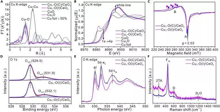 圖2.Cu1-O(I)/CeO2和Cu1-O(C)/CeO2 的相關(guān)譜圖表征