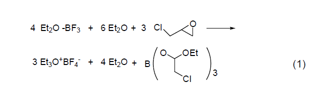 【制備和商品】Meerwein 鹽在各大試劑公司均有銷售,也可通過3-氯-1,2-環氧丙烷與BF3-OEt2配合物反應制備而來 (式1)。